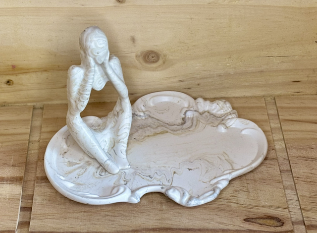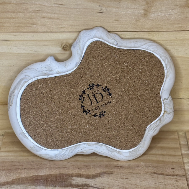 Plateau/vide-poche bohème en jesmonite (mélange de poudre de gypse et d'aquarésine) marbré beige.